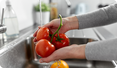 - Rinse produce thoroughly under clean running water
