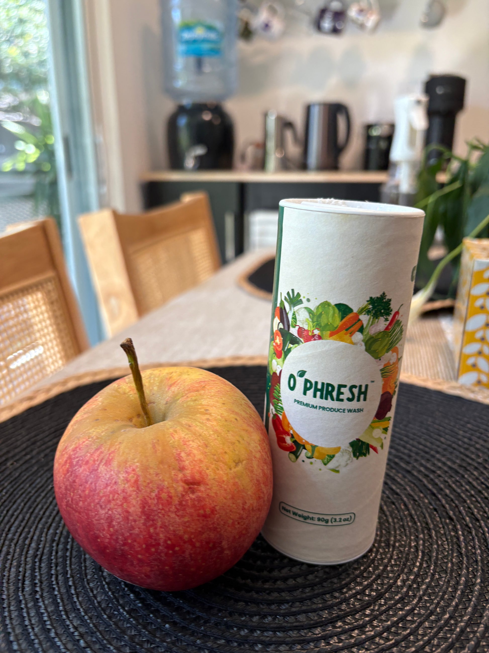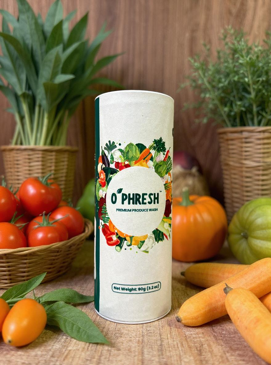 O'phresh is a 100% natural vegetable wash that eliminates dirt, wax, pesticides, and residues from your fruits and veggies—safely and effectively.