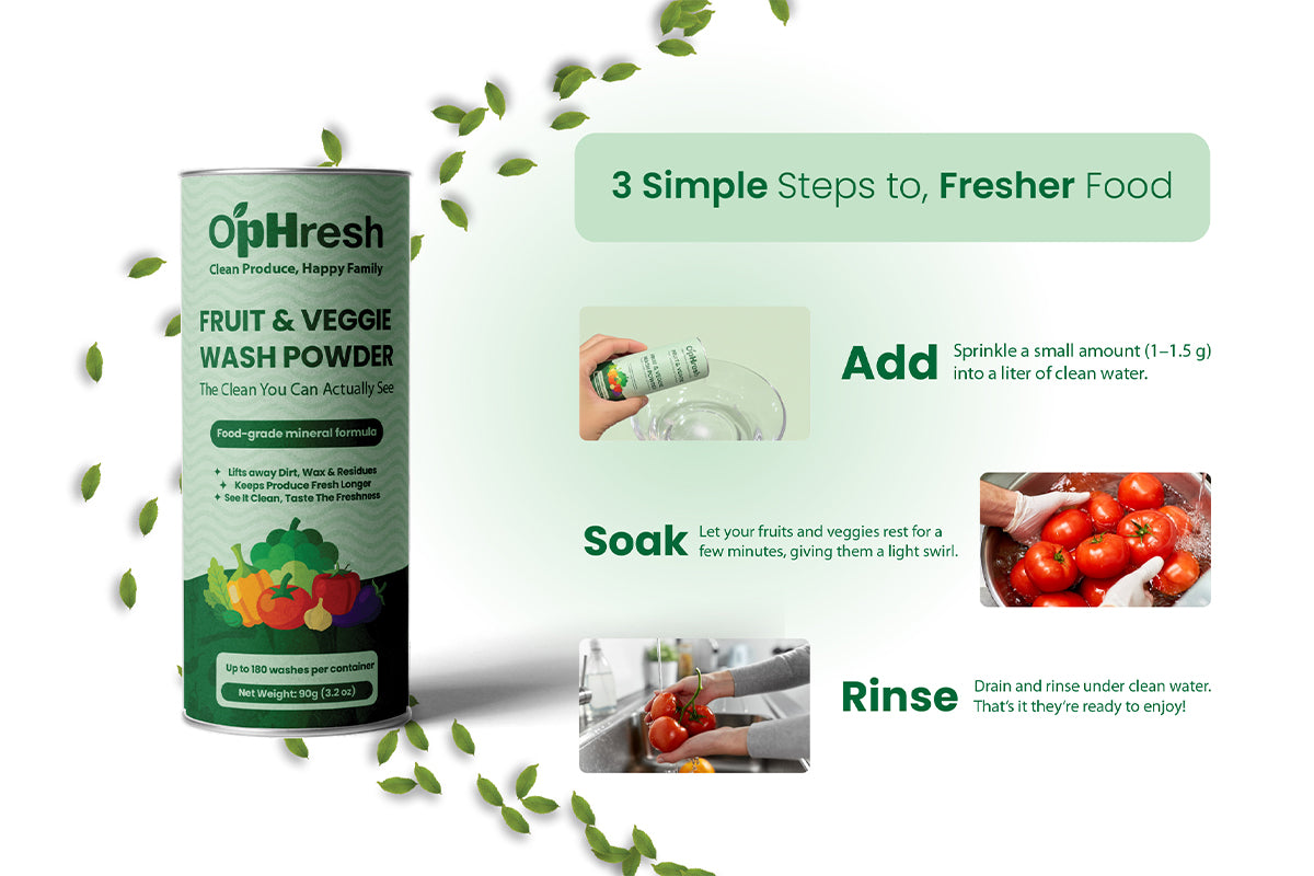 O’Phresh isn’t just another kitchen cleaner — it’s part of a mindful, eco-friendly lifestyle. It helps reduce waste from packaged produce cleaners, is safe for waterways, and keeps your routine refreshingly minimal.